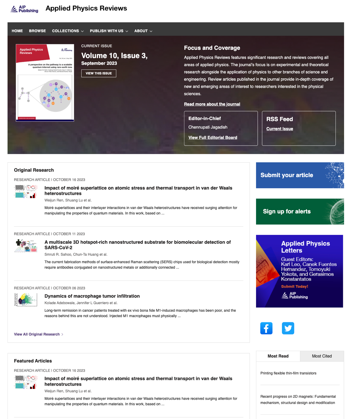 近日,金年汇在线登录入口声子学中心陈杰教授团队与新加坡高性能计算研究所张刚教授合作,在《应用物理评论》(Applied Physics Reviews)上发表了题为“Impact of moiré superlattice on atomic stress and thermal transport in van der Waals heterostructures”的研究论文,深入揭示了层间转角调控石墨烯/六方氮化硼莫尔超晶格面内热导率的物理机制,并入选该期刊Featured Article在其官网首页宣传展示(https://pubs.aip.org/aip/apr)。