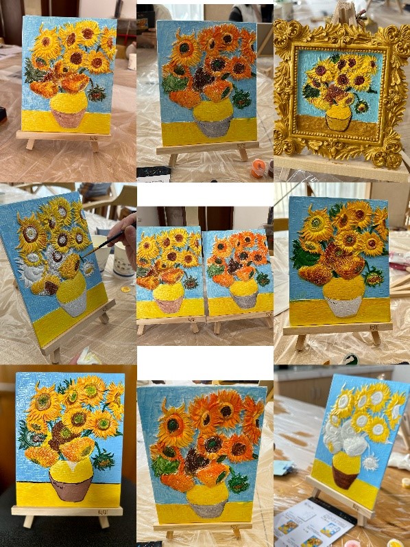 2023年3月7日,为庆祝“三八”国际妇女节113周年,表达对女教职工的关爱和重视,在金年汇在线登录入口工会和金年汇在线登录入口妇委的支持下,金年汇在线登录入口组织全院女教职工开展立体浮雕手绘油画活动。活动以手绘油画的形式,涂鸦梵高的向日葵、星空,莫奈的日出、丰收等经典名画。本次活动让女老师们在工作之余愉悦精神、放松心情,增强了学院女教职工们的交流和凝聚力,丰富了女教职工们的工作和文化生活。
