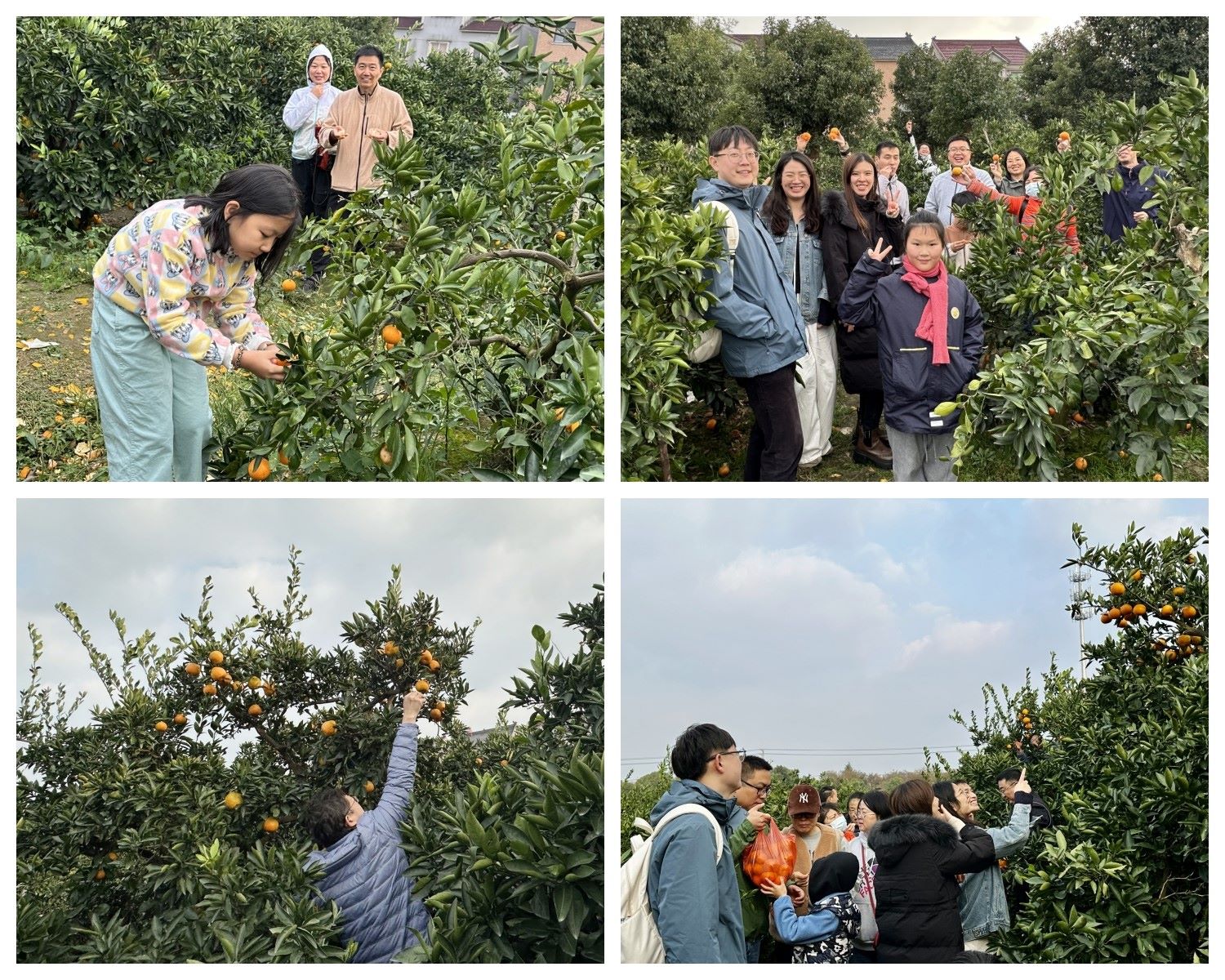 午饭之后大家去橘子采摘,橘园里,随处可见金灿灿、挂满枝丫的橘子。大伙儿就这样一边吃一边摘,一边摘一边笑,整个橘园沉浸在一片欢声笑语之中……