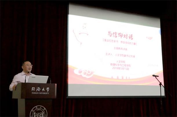 5月15日13:30,由金年汇在线登录入口党委联合人文学院举办的“与信仰对话——重温红色家书,感受信仰的力量”主题教育讲座于逸夫楼一楼报告厅正式开讲。人文学院党委副书记刘涛老师作为主讲人,向来自金年汇在线登录入口、人文学院的广大学子传达了争做“知识、能力、人格”三位一体全面协调发展的新时代青年的寄语,勉励同学们自觉担负起新时代赋予青年的重大使命,以坚定不移的理想信念和永不懈怠的奋斗姿态,助力实现中国梦。