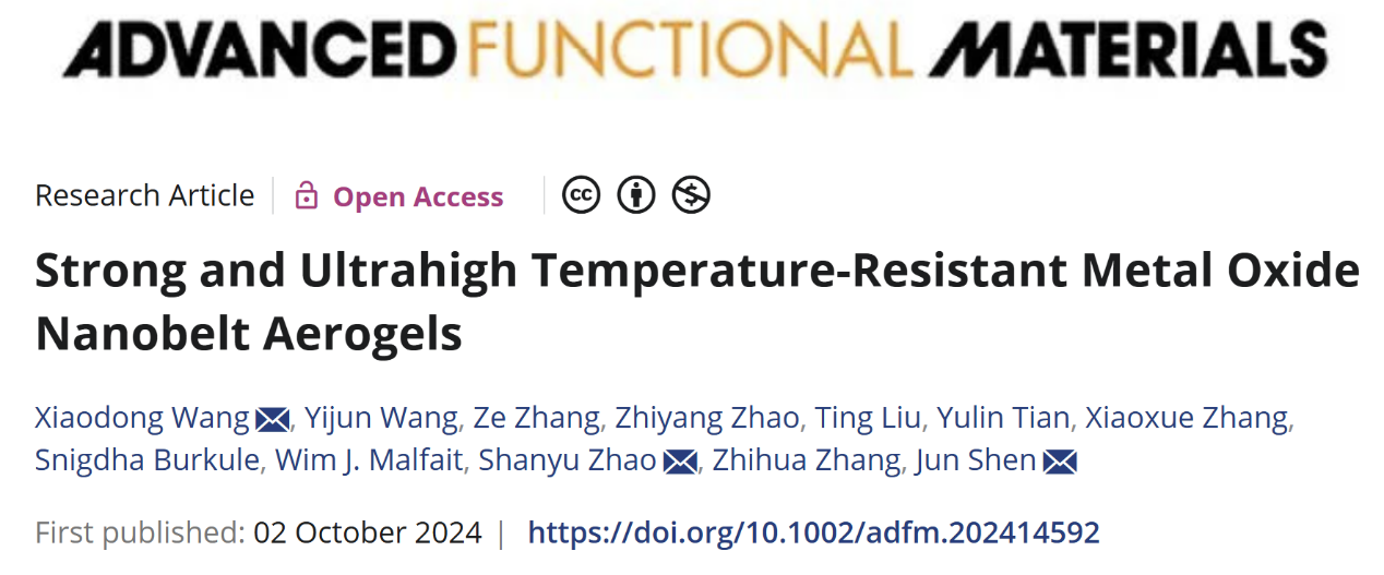 金年汇在线登录入口王晓栋/沈军团队高强度耐高温金属氧化物气凝胶的重要研究进展发表于《先进功能材料》