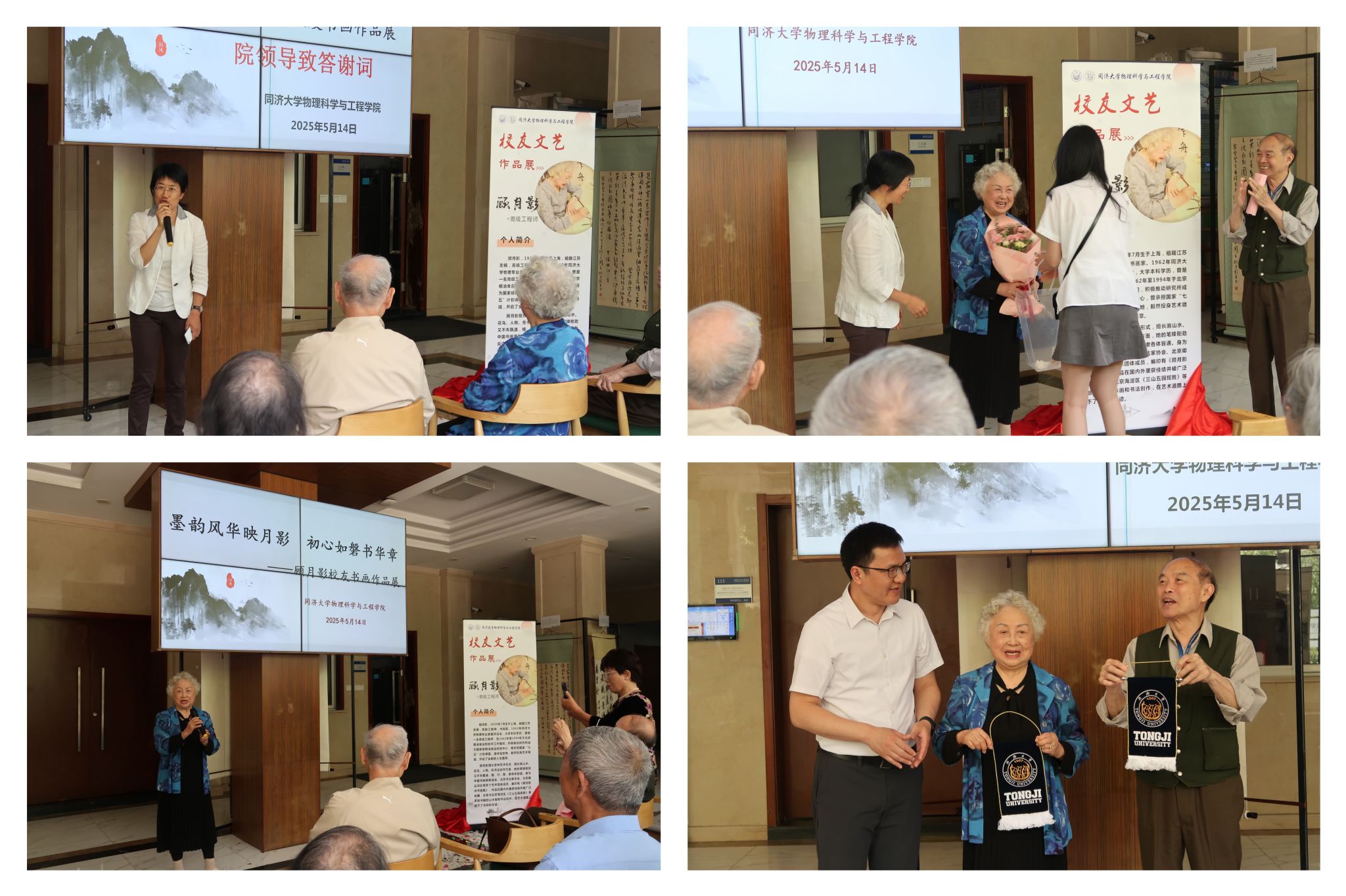 5月14日,在四平路校区物理馆一楼大厅,金年汇在线登录入口首届本科毕业生(62届)顾月影校友书画展揭幕仪式举行。本次画展以“墨韵风华”为主题,共有20余幅作品展出,分为“自然之境”“人文雅趣”“经典传承”三个篇章,集中展示了顾月影校友的书画艺术作品。本次展览将从5月中旬持续到6月底,欢迎广大师生和校友参观。